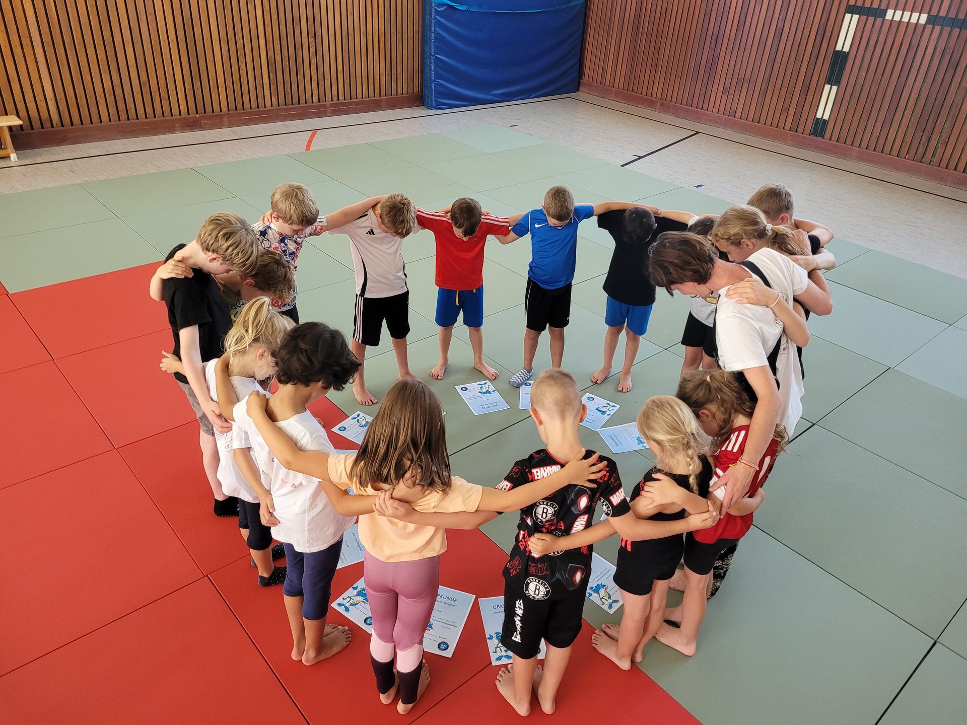 Auch in diesen Sommerferien war das Trainerteam des Judo und Ju-Jutsu Club St. Ingbert e.V. fleißig unterwegs, um Kinder und Jugendliche mit unserem Sport zu begeistern. Hierfür nahmen wir erstmals an der t rilateralen Sommerfreizeit teil, die vom Spohns Haus organisiert und mit großem Engagement umgesetzt wurde. An fünf verschiedenen Terminen entwickelten vier unserer Trainerinnen und Trainer ein abwechslungsreiches und altersgerechtes Programm für Jugendliche im Alter von 13 bis 18 Jahren. Ziel war es, mit praktischen Übungen zur Selbstverteidigung , dem Umgang mit Eskrima-Stöcken , sowie Strategien zur Vermeidung von Gefahrensituationen einen Einblick in die Welt des Ju-Jutsu zu geben. Ebenso sollte der Teamgeist mit zielgerechten Auflockerungsspielen gestärkt werden. Besonders beeindruckend war hier, wie der Sport über Sprach- und Kulturgrenzen hinweg verbindet: Trotz unterschiedlicher Herkunft und Sprachen entstand ein Raum von Respekt, Spaß und Teamgeist. Des Weiteren boten vier unserer Trainerinnen in drei Ferienwochen eine abwechslungsreiche Kombination aus Training und Spielen an. Dieses Programm wurde im Rahmen der St. Ingberter „Fun-Ferien“ in der Albert-Weisgerber-Sporthalle angeboten. Unter dem Motto „Mit Spaß zur Selbstverteidigung“ wurden die Kinder (6-11 Jahre) spielerisch an das Thema herangeführt und für dessen Bedeutung sensibilisiert. Neben leicht erlernbaren und effektiven Techniken standen auch Prävention und Selbstbehauptung im Mittelpunkt. Da der Spaß in den Ferien nicht zu kurz kommen durfte, wurde das Training mit Spielen wie Pratzenhockey, Karten-Staffellauf, Feuer-Wasser-Sturm, Klammerklau, Ninja und Samurai ergänzt. So wurde erfolgreich für Bewegung, Teamgeist und viele lachende Gesichter gesorgt. Abschließend möchten wir uns herzlich bei der Leitung des Spohns Haus für das entgegengebrachte Vertrauen bedanken und freuen uns, Teil dieses besonderen Projekts gewesen zu sein. Des Weiteren bedanken wir uns bei allen Eltern für das in uns gesetzte Vertrauen und wünschen allen Kindern einen gelungenen und erfolgreichen Start ins neue Schuljahr!