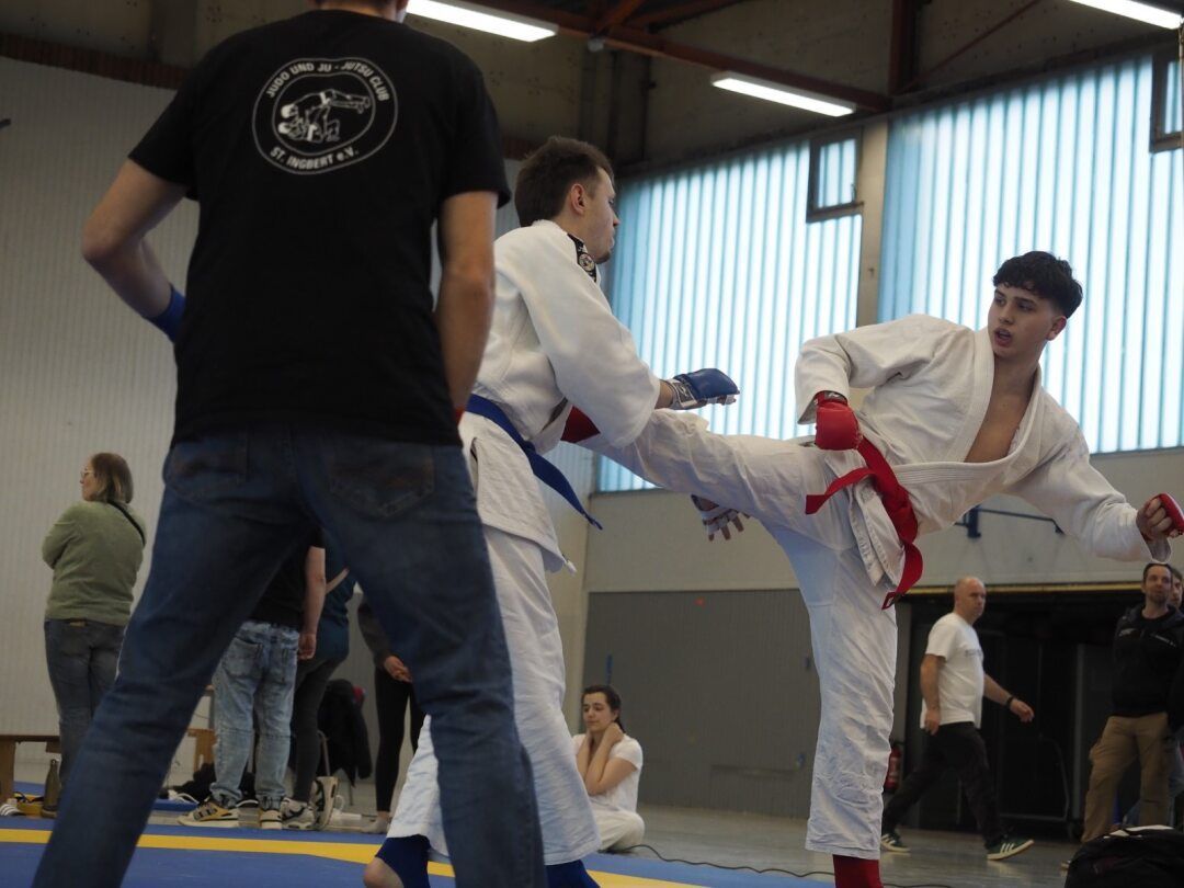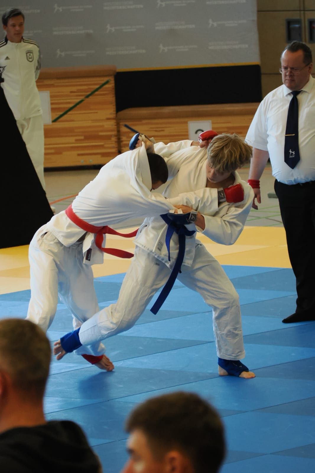 Am 10. Mai 2025 fanden die westdeutschen Meisterschaften in Michelstadt statt. Zu dieser reisten vier Bundesländer mit insgesamt 140 Wettkämpfern an. Das Saarland sendete sieben Athleten und Athletinnen, von denen zwei Athleten dem Judo und Ju-Jutsu Club St. Ingbert e.V . angehörig sind. Louis und Daniel qualifizierten sich aufgrund ihrer gezeigten Leistungen vom 29.03. auf der Ju-Jutsu Landesmeisterschaft 2025 Rheinlandpfalz/Saarland in Bad Kreuznach für diese Meisterschaft. Bereits einen Tag vor den offiziellen Kämpfen reisten sie mit den beiden „großen Daniels“ an, da die Kämpfer schon am 9. Mai zum Wiegen antreten mussten. Durch das offizielle Wiegen wurden die Wettkampfklassen ermittelt: Louis kämpfte in der Klasse U16 bis 63 kg und Daniel in der U18 bis 69 kg. Nachdem dieser Pflichtteil erfüllt war, wurde zusammen Michelstadt erkundet. Abends trafen sich alle angereisten Saarländer, um bei einem gemeinsamen Essen den Abend gemeinsam ausklingen zu lassen und sich vor den Wettkämpfen noch etwas auszutauschen. Mit vollgeschlagenem Bauch ging es zurück ins Hotel, um am nächsten Tag mit ausreichend Schlaf - wenn auch etwas nervös - in den Wettkampftag starten zu können. Am nächsten Morgen machte sich die Gruppe dann nach einer letzten morgendlichen Stärkung konzentriert und fokussiert auf den Weg Richtung Sporthalle. Hier waren drei Mattenflächen aufgebaut: auf zwei wurden Fighting und auf einer BJJ-Kämpfe ausgetragen. Unsere beiden Fighting-Athleten mussten sich auf ihrer ersten westdeutschen Meisterschaft gegen sechs andere Kämpfer behaupten, die sich zum Großteil als sehr starke und erfahrene Gegner herausstellten. Dank der ambitionierten Vorbereitung sowie Unterstützung unserer Wettkampftrainer Marc und Daniel konnten sich die beiden allerdings sehr gut durchsetzen. Dies konnte am Ende dieses anstrengenden Tages mit einer Medaille belohnt werden: Louis wurde Vize-Westdeutscher-Meister , wobei er zwei Siege durch Full Ippon einholte, und Daniel sicherte sich die Bronzemedaille seiner Wettkampfklasse!!! Aufgrund dieser fantastischen Leistungen konnten sich beide für die deutsche Meisterschaft qualifizieren. Das Trainerteam sowie all eure Vereinsfreunde sind superstolz auf eure Disziplin, Ausdauer, euren Ehrgeiz und die dadurch gezeigten Leistungen sowie erlangten Erfolge. Weiter so!